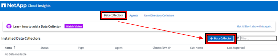 [Data Collectors]タブに移動し、ONTAPと連携をします。