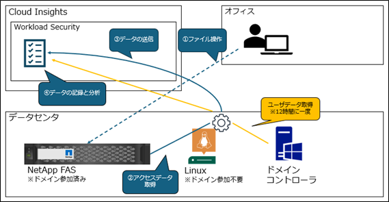 ファイル操作が行われると、NetApp FASはファイル名やアクセスの内容、アクセスしたユーザ情報などのデータの送信を行います。