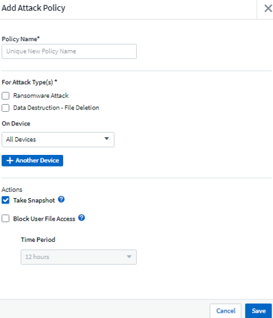 攻撃および警告が発生した際に、アクセスの停止やSnapshotの取得を設定することが可能です。