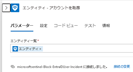 +から「Microsoft Sentinelのエンティティ – アカウントを取得」を選択します。
