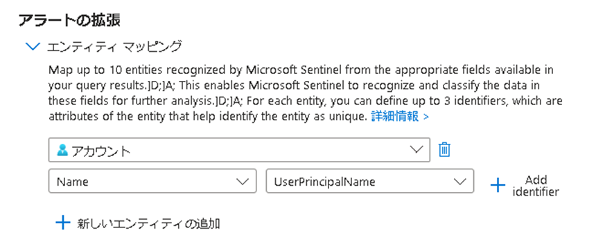 アラートの拡張にあるエンティティマッピングで、アカウントをセッティングします。