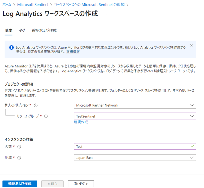 ※既存でLog Analyticsのワークスペースがある場合、そちらを利用する事も可能です。