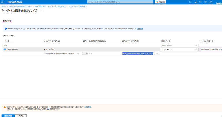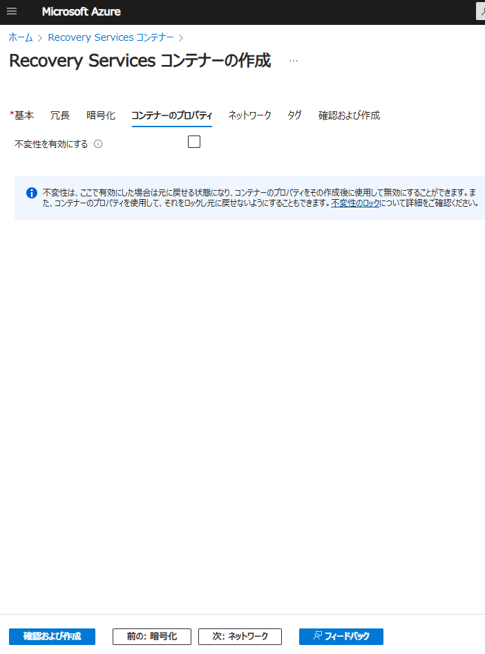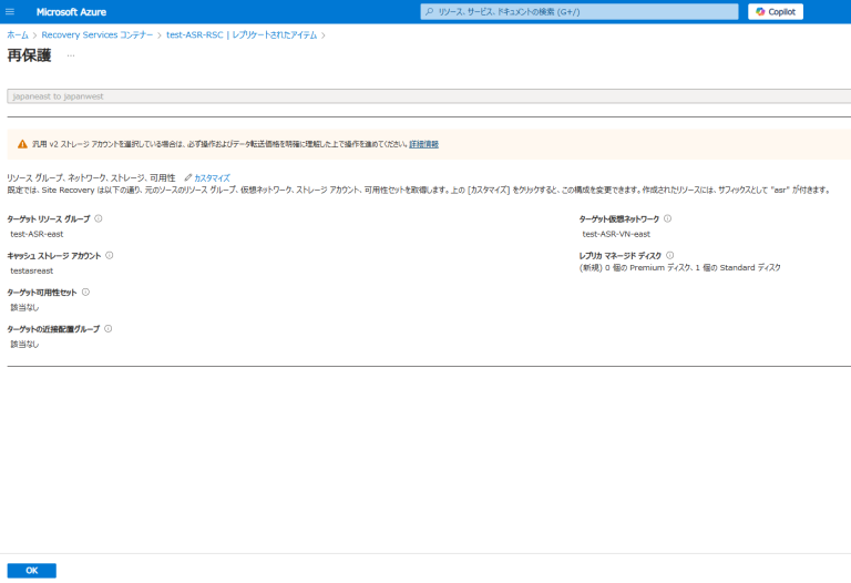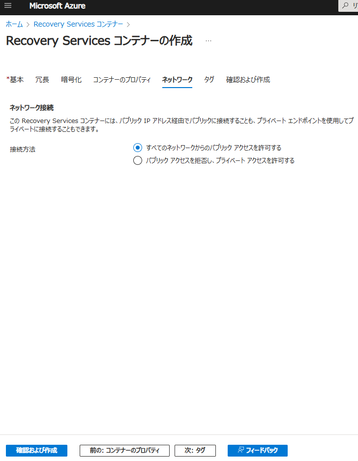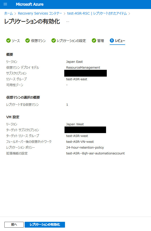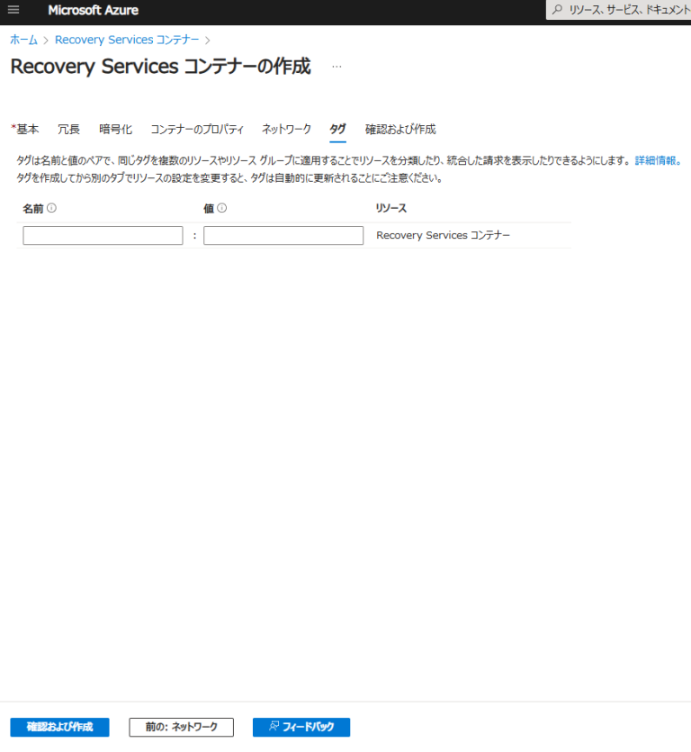 上記で「①Recovery Serviceコンテナーの作成」が完了したため、