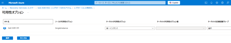 ターゲットの可用性オプションを単一インスタンス、可用性セット、