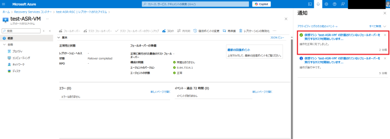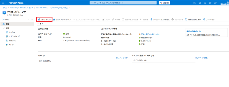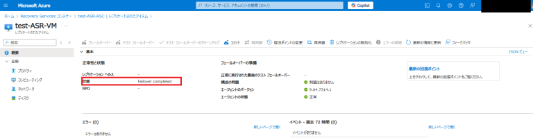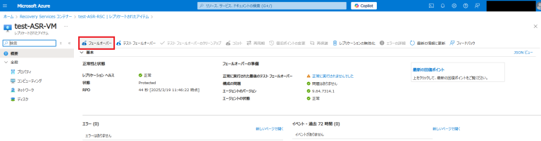 復旧ポイントが作成されてフェールオーバーできるようになるまでは、