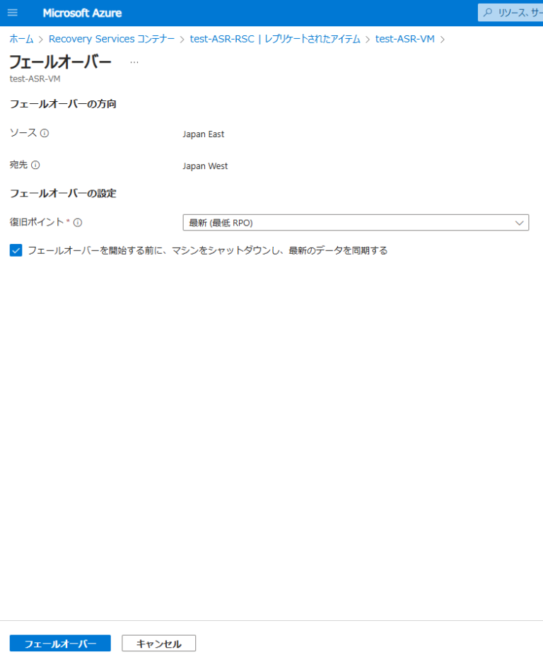 これでDRの環境が整ったため、実際に保護対象の切り替え(フェールオーバー)と