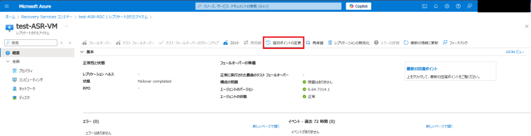 フェールオーバーが完了した時点では、復旧ポイントの変更が可能です。