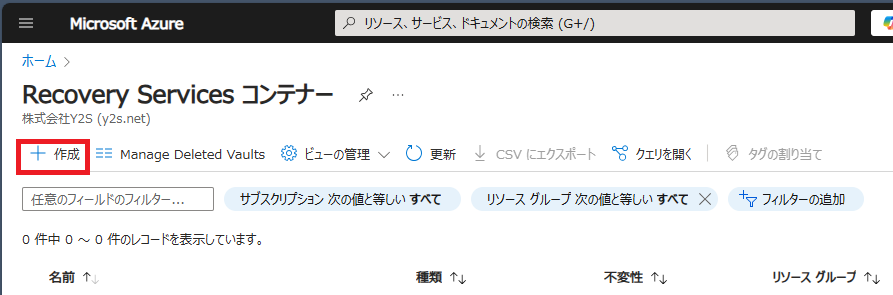 では、早速「①Recovery Serviceコンテナーの作成」から始めていきます。
