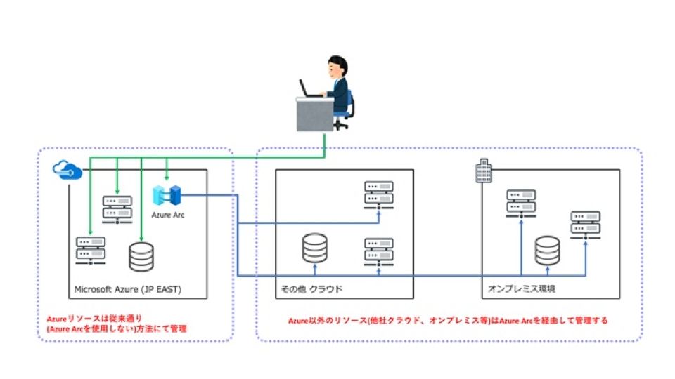 Azure Arc とは、Microsoft社が提供しているサービスの一種で、Azure以外で稼働している