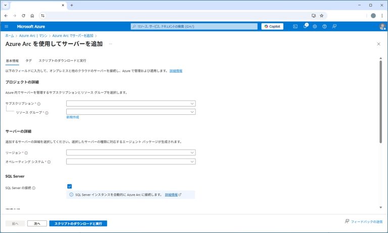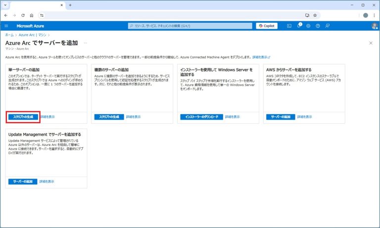 Azure Arcにサーバーを接続するためには、Azure Connected Machine Agentをインストールする必要があります。インストール手順等については、次項以降にて説明いたします。