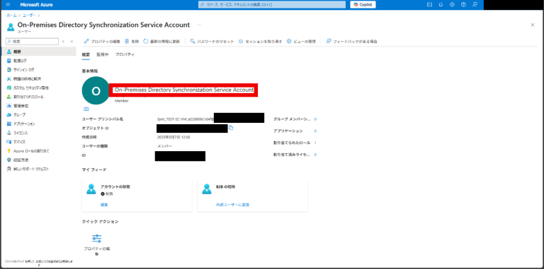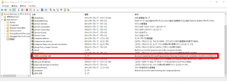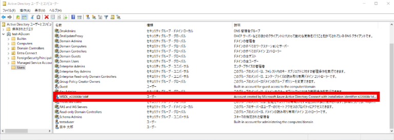 同期対象のドメイン内に「MSOL_○○○○」という名前のユーザが存在していることを確認する。