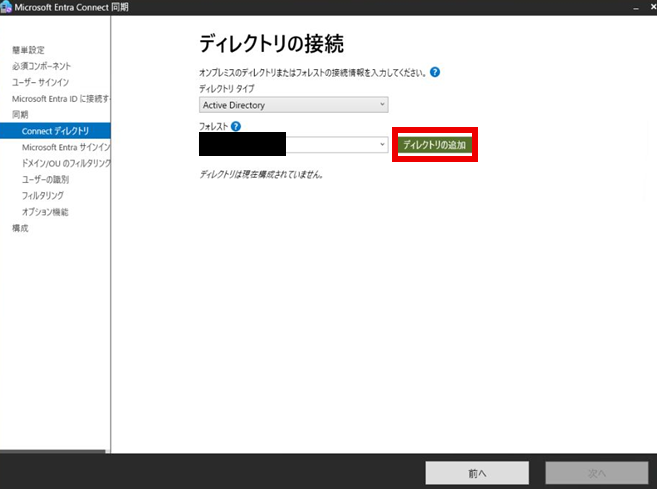 「ディレクトリの接続」で「ディレクトリの追加」を押下する。