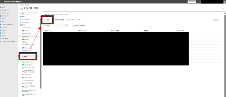 (3)[デバイスの管理] > [構成] > [ポリシーの作成]をクリックします。