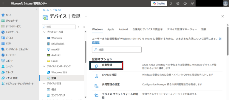 Microsoft Entra Join した際に Intune にデバイスが登録されるように設定します。