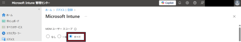 (5)[MDM ユーザー スコープ]を[すべて]にします。