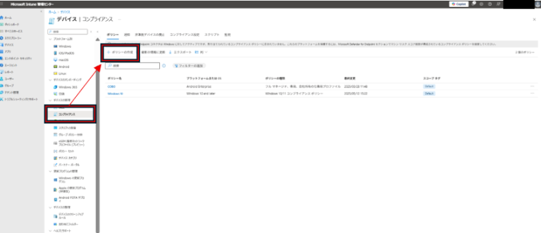 (3)[デバイスの管理] > [コンプライアンス] > [ポリシーの作成]をクリックします。