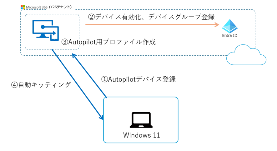 今回は新入社員の端末を一斉に準備するケースを想定してWindows 11に対してAutopilot自動キッティングの検証を行います。