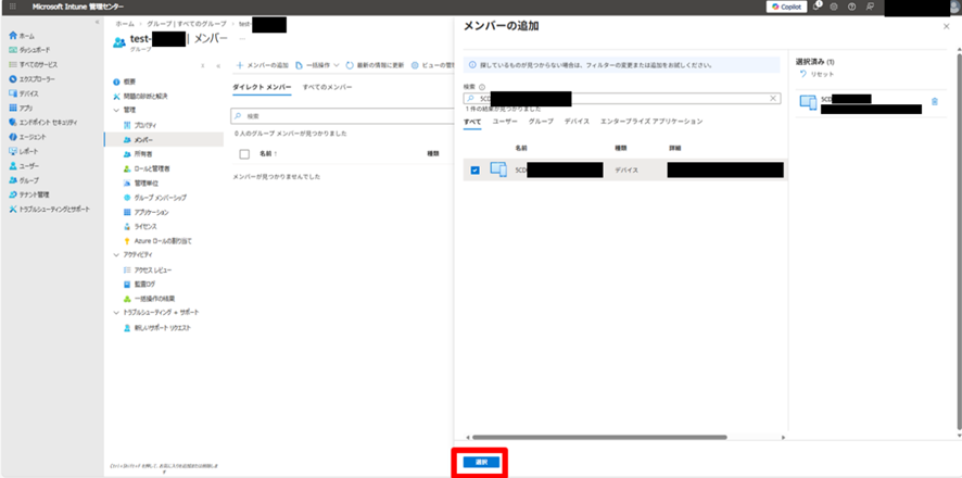 アカウントの関連付け後は、「関連付けられた Microsoft Entra デバイス」のデバイスを任意のデバイスグループに追加してください。