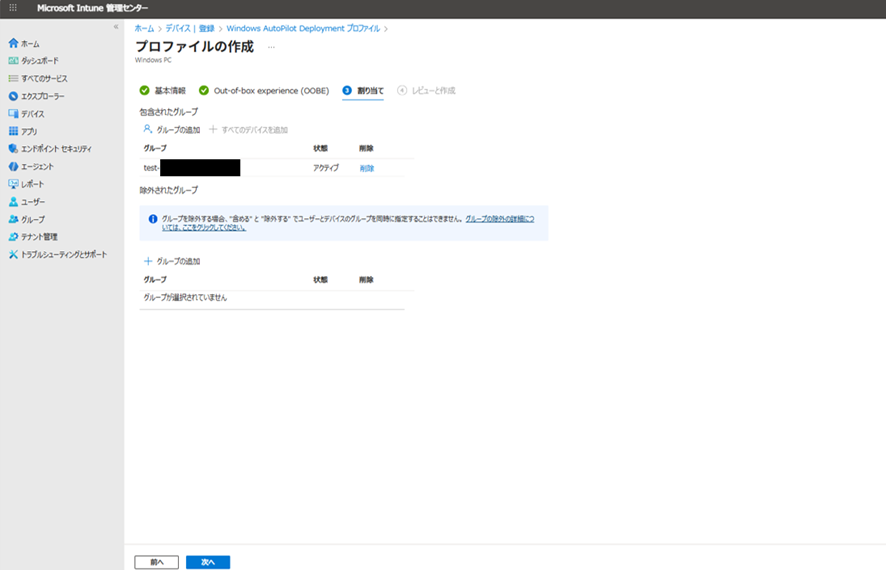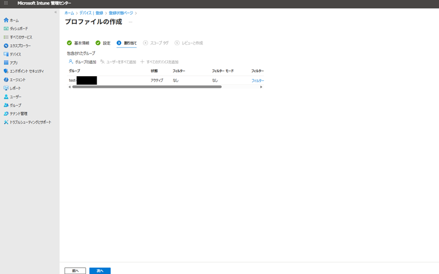 「割り当て」ではグループは先ほど作成したデバイスグループを指定します。
