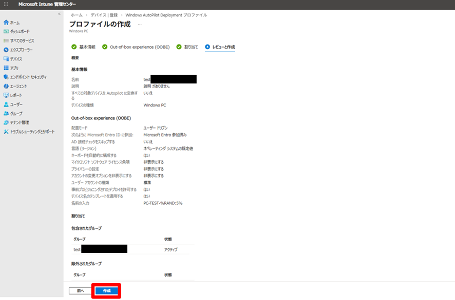 ※このデバイスグループは後ほどAutopilot用プロファイルに割り当てます