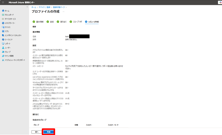 Autopilot用のデプロイプロファイル、登録状態ページを作成します。