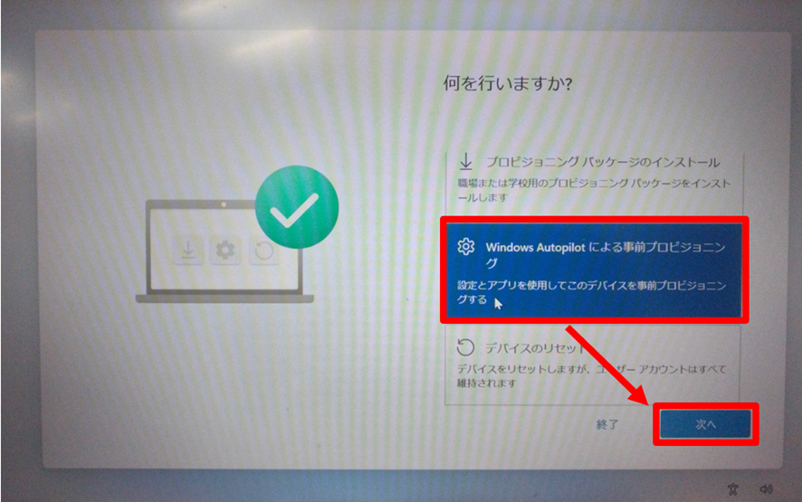 どうセットアップさせるか”をIntuneで定義する設定テンプレートです。Autopilot を使うと、