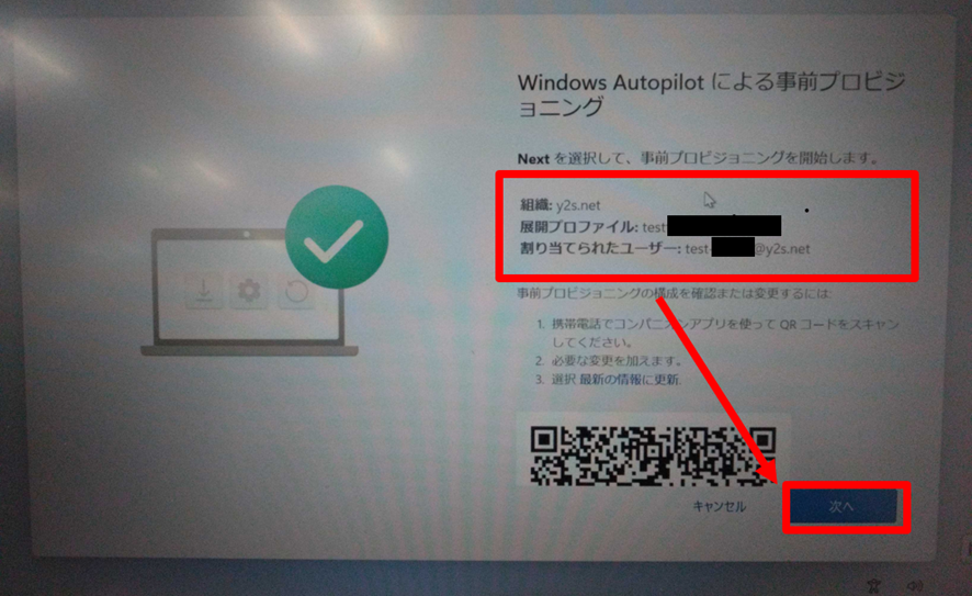 インターネットに接続して、初期化状態のPCに電源を入れて自動キッティングの動作を確認します。